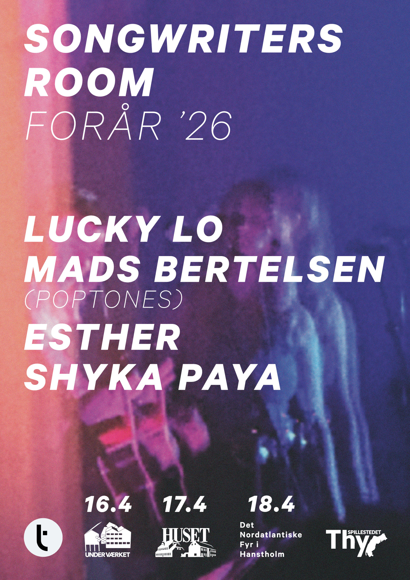 Billet: https://spillestedetthy.dk/?ytroute=%2Farrangementer%2F56423%2Fsongwriters-room-lucky-lo-mfl%2F