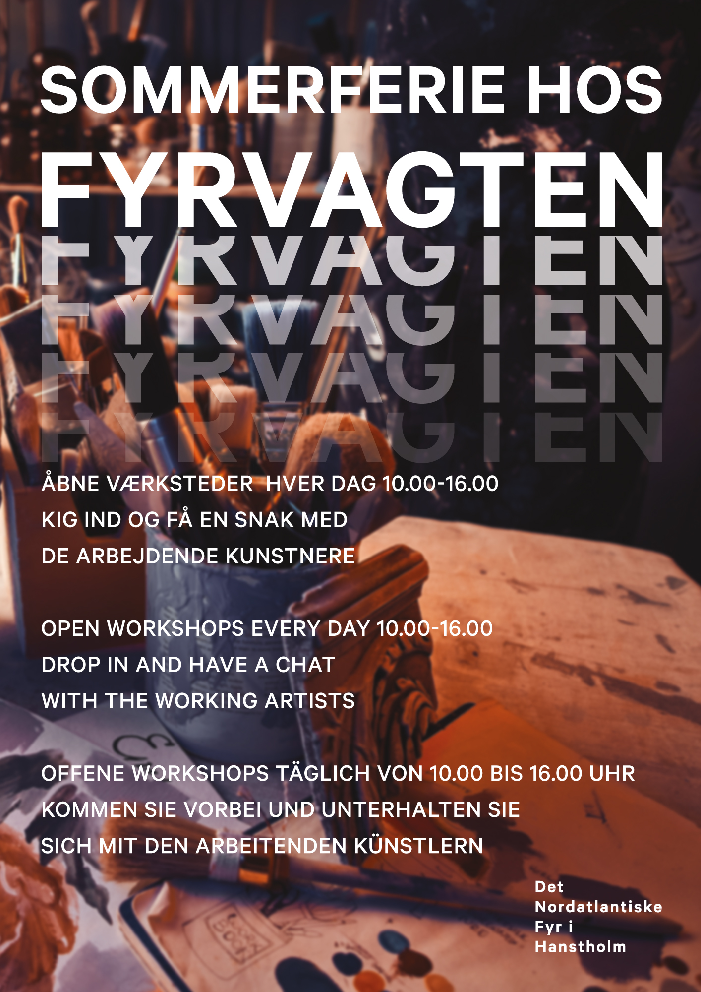 Alle dage i sommeren fra kl. 10.00 til 16.00 holder kunstersammenslutningen Fyrvagten åbne værksteder i Vestlængen på Det Nordatlantiske Fyr i Hanstholm.